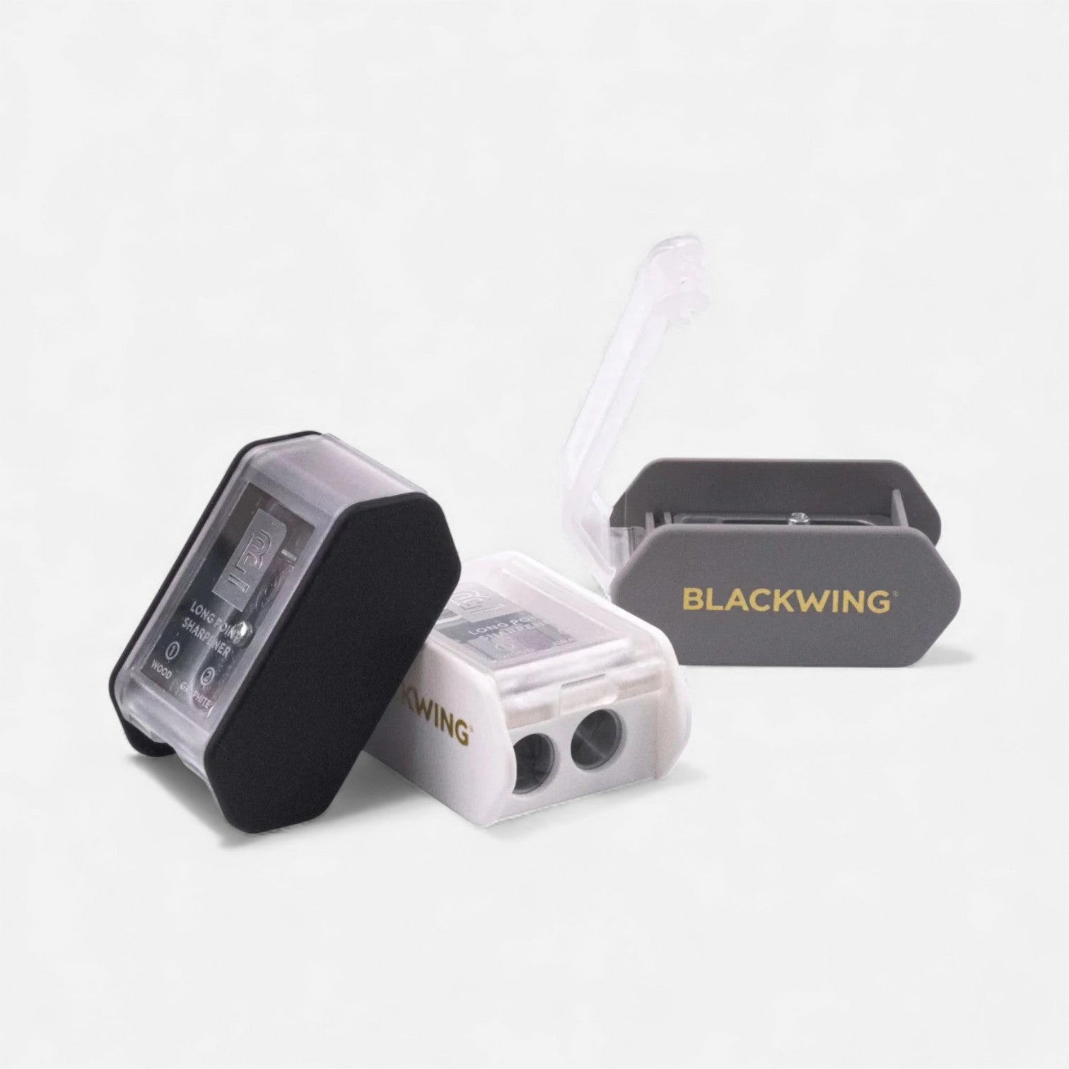 The upgraded Two-Step Long Point Sharpener features Blackwing's reliable two-step sharpening system inside of a sleek new package. Even though this new sharpener feels much smaller in your hand, it holds the same amount of shavings as its predecessor thanks to some optimisations to the shaving compartment. Improvements to the design mean the lid also stays shut now when you use it.