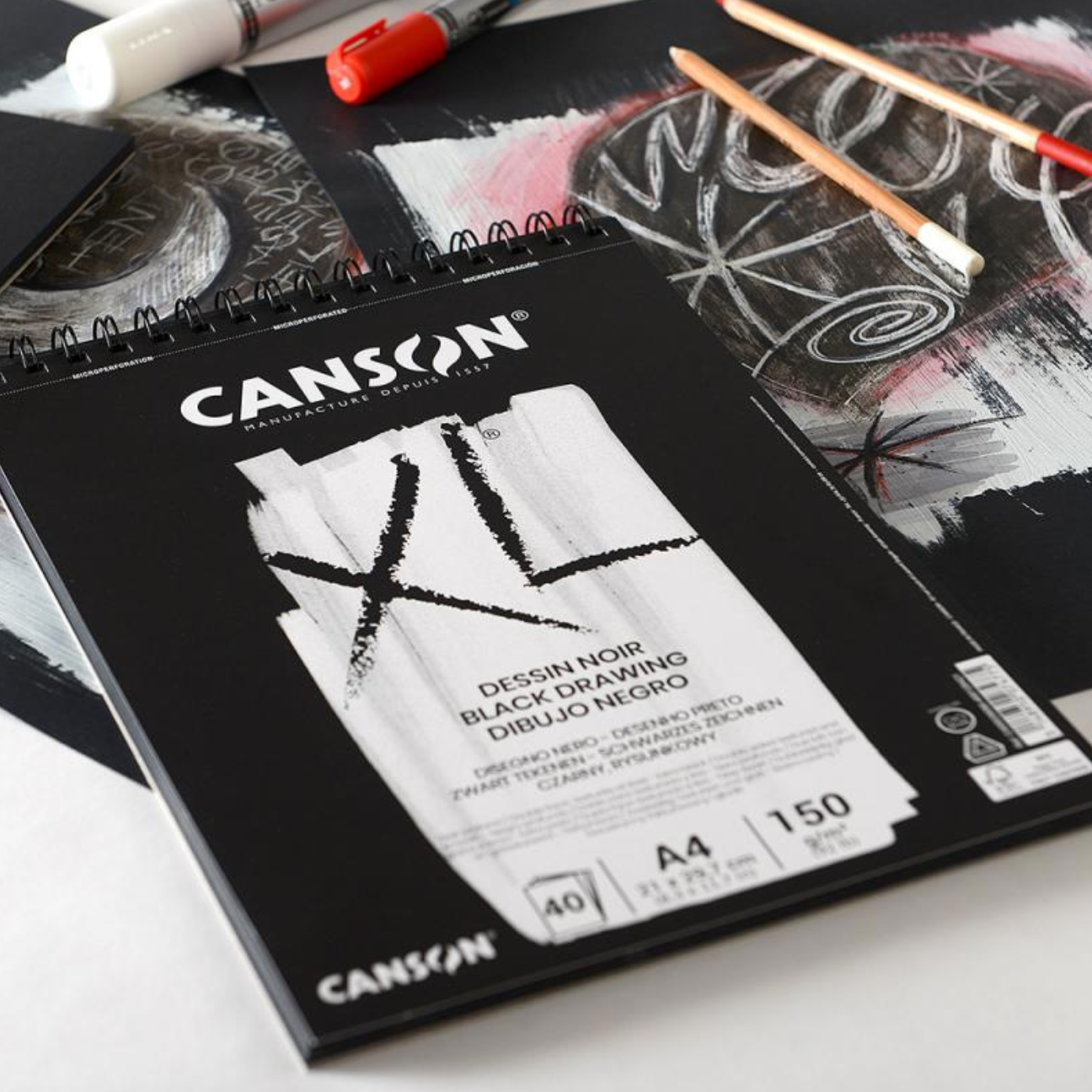 XL® Black is a pulp-dyed paper, specially designed for all dry techniques (pencil, charcoal, pastel, pen). This double-sided paper is perfect for sketching and drawing and its textured surface is ideal for sharp and precise lines with pencil or pastel, while the other, smoother side is ideal for felt-tip and marker.