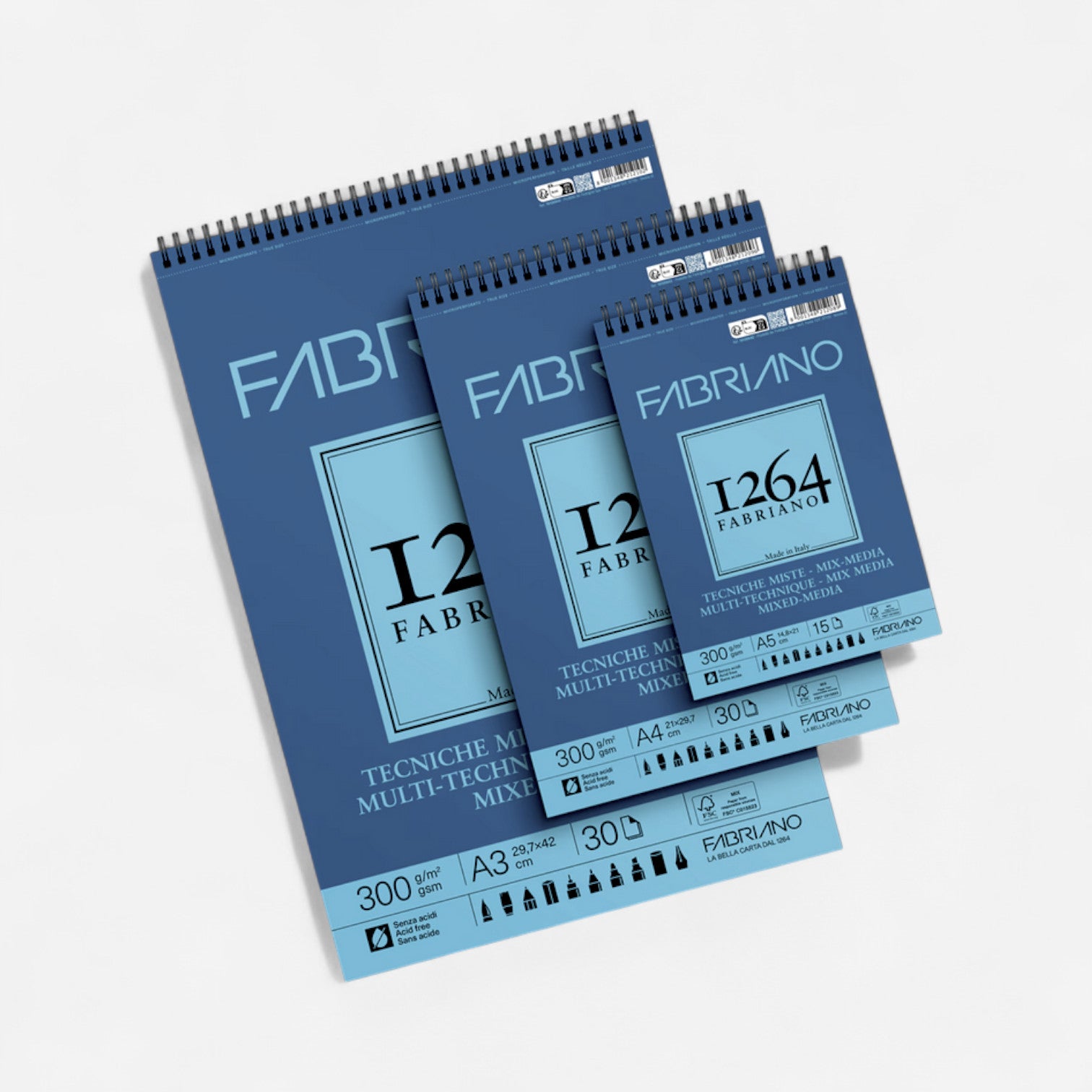 The Fabriano 1264 Mixed Media Pad includes 300gsm, heavyweight paper and light grain for use with a range of mixed media both wet and dry.