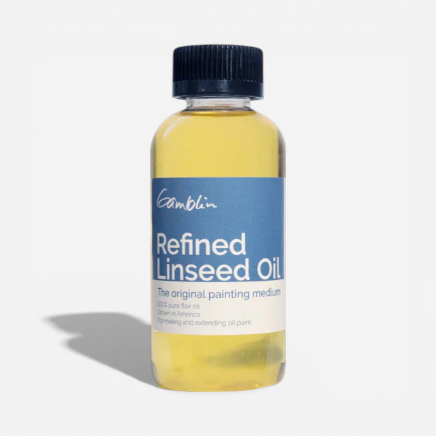 Refined Linseed Oil (low acid) is the same high-quality linseed oil used to craft Gamblin paints. Useful for thinning colors, making them more transparent, and extending dry-time.