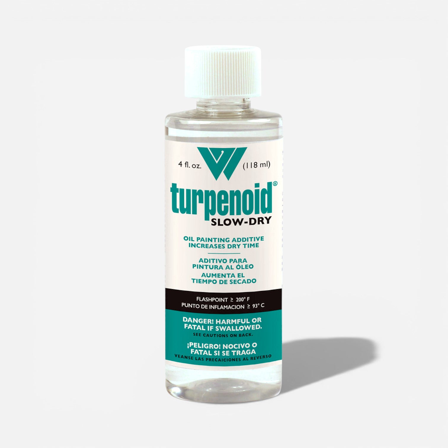 Turpenoid® Slow-Dry should be used for thinning artist oil colors for a lean wash or modifying oil painting mediums to increase dry time. Mix small amounts of Turpenoid® Slow-Dry directly into oil color or medium to increase fluidity and dry time. Never apply the medium directly on your work of art without testing on a separate surface to ensure the compatibility of materials and desired result. This product is to be used exclusively and explicitly to reduce the viscosity of, and/or remove, art coating compositions or components. This product is not intended for cleaning art coatings from painting equipment or tools.